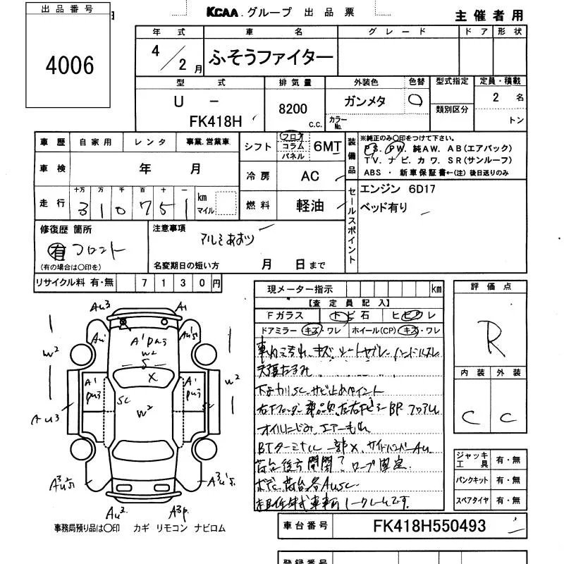 Mitsubishi FUSO FIGHTER с аукциона Японии KCAA Yamaguchi лот № 4006