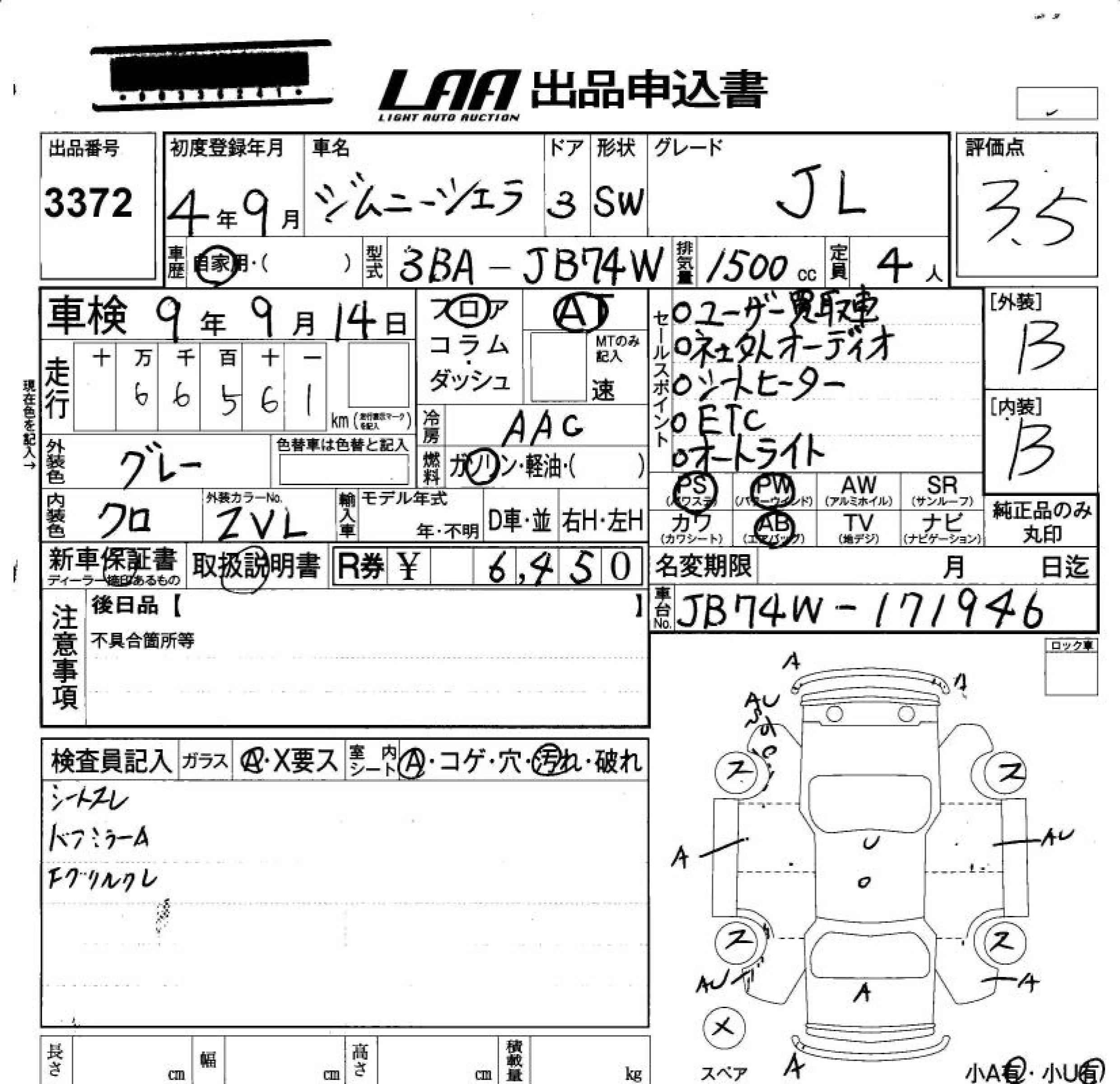 Suzuki JIMNY SIERRA с аукциона Японии LAA Okayama лот № 3372