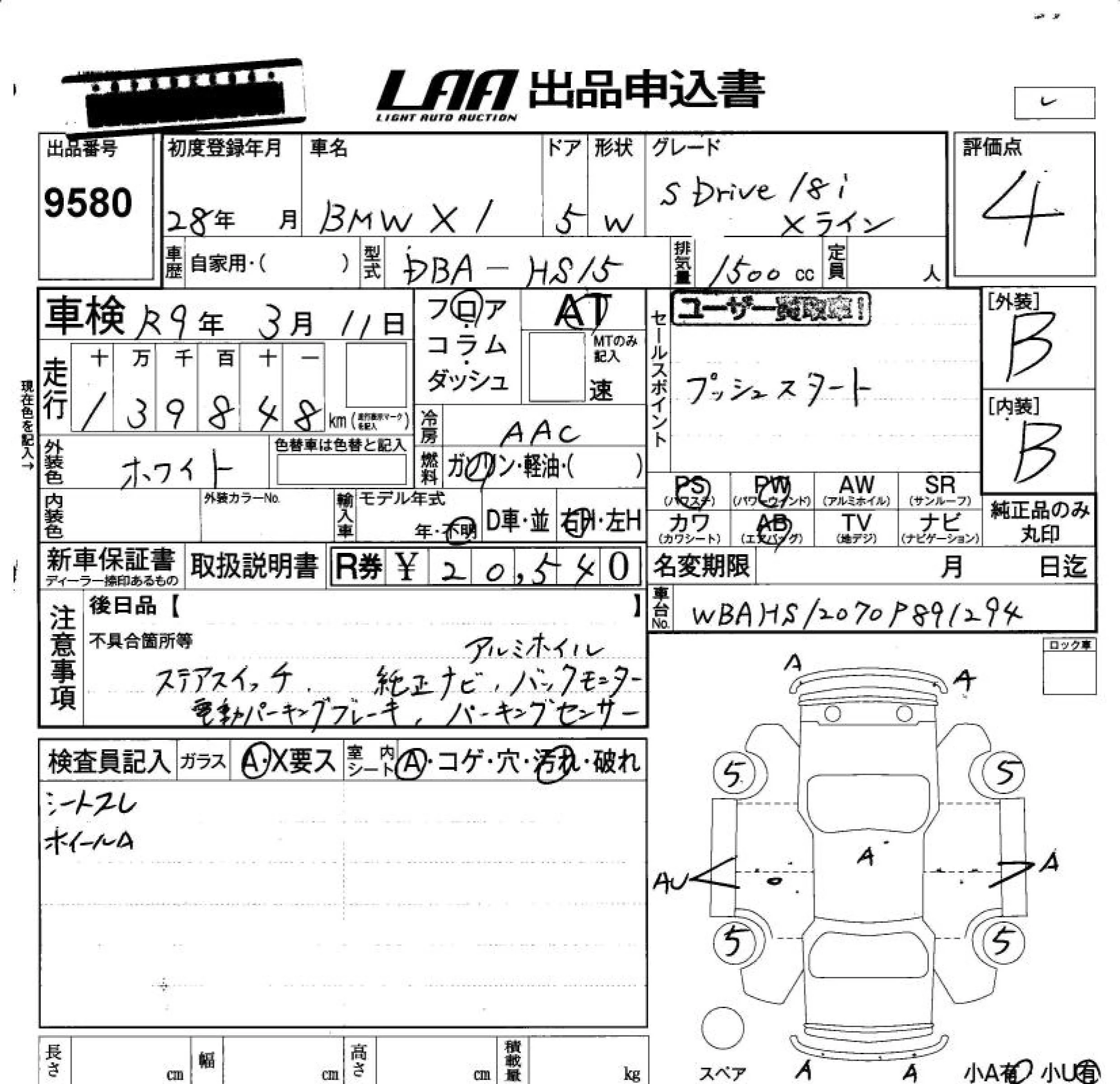 BMW X1 с аукциона Японии LAA Okayama лот № 9580