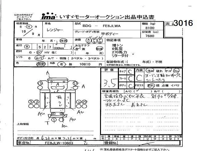 Hino RANGER с аукциона Японии Isuzu Kobe лот № 3016