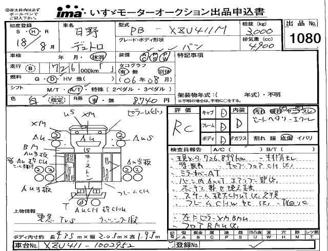 Hino DUTRO с аукциона Японии Isuzu Kobe лот № 1080