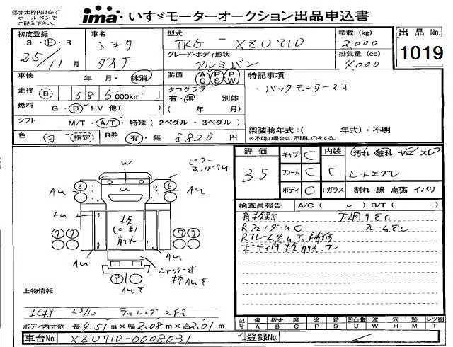 Toyota DYNA с аукциона Японии Isuzu Kobe лот № 1019