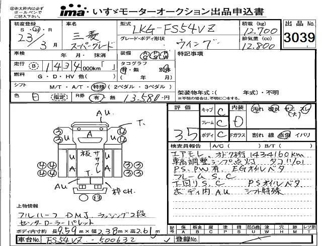 Mitsubishi FUSO TRUCK с аукциона Японии Isuzu Kobe лот № 3039