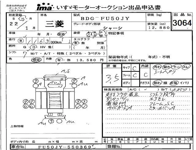 Mitsubishi FUSO TRUCK с аукциона Японии Isuzu Kobe лот № 3064