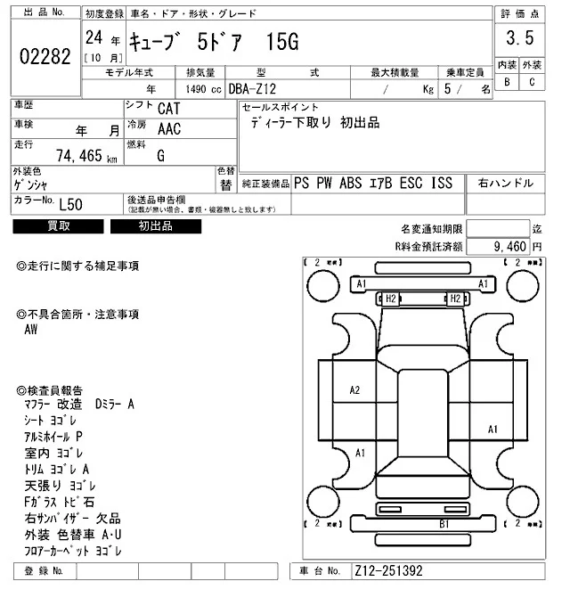 Nissan CUBE с аукциона Японии ARAI Bayside лот № 2282
