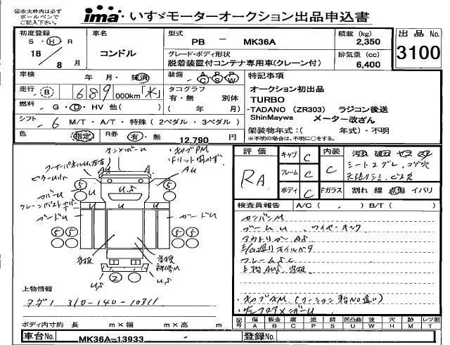 Nissan CONDOR с аукциона Японии Isuzu Kobe лот № 3100