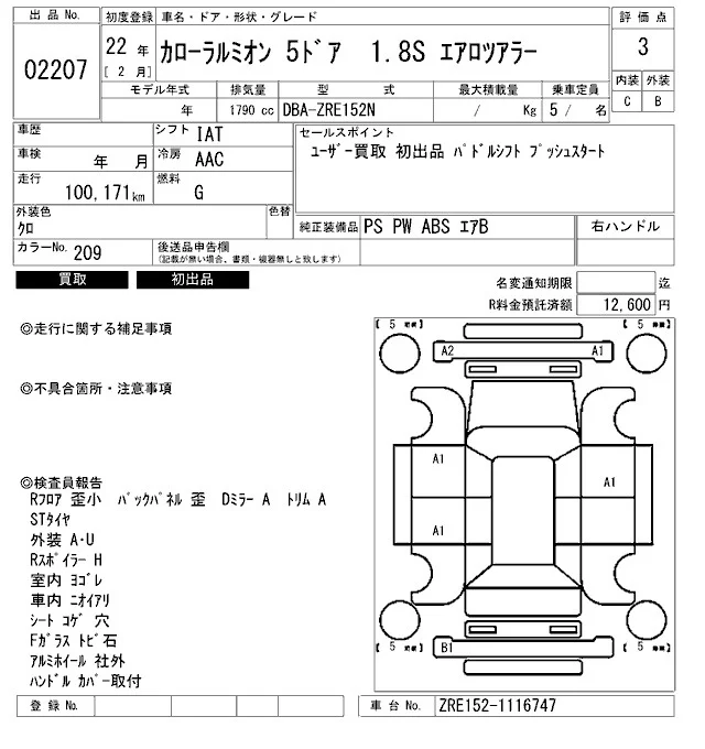 Toyota COROLLA RUMION с аукциона Японии ARAI Bayside лот № 2207