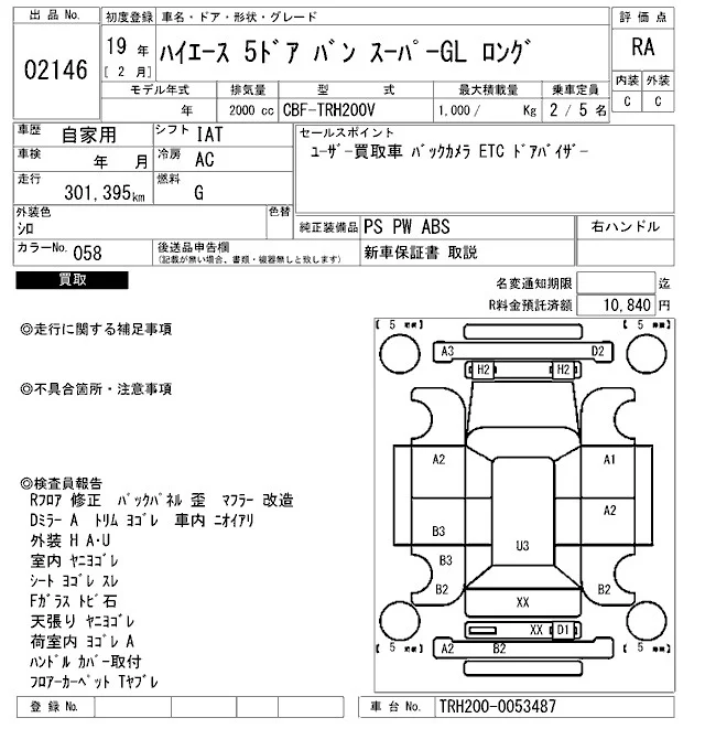 Toyota HIACE VAN с аукциона Японии ARAI Bayside лот № 2146