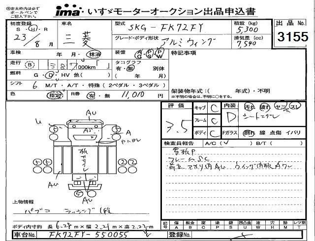 Mitsubishi FUSO FIGHTER с аукциона Японии Isuzu Kobe лот № 3155