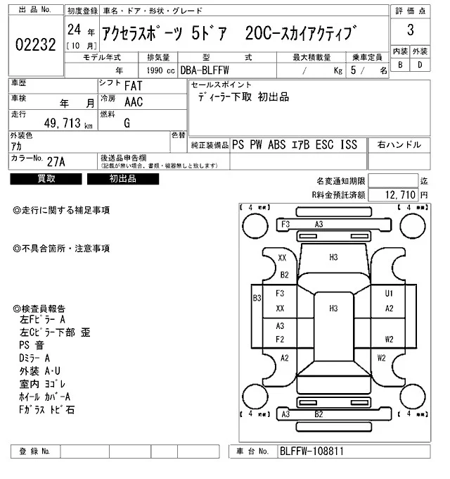 Mazda AXELA с аукциона Японии ARAI Bayside лот № 2232