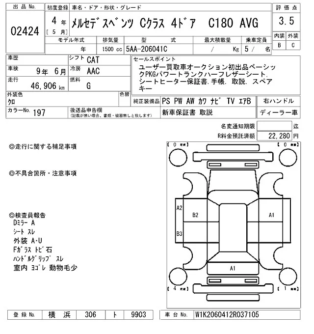 Mercedes-Benz C CLASS с аукциона Японии ARAI Bayside лот № 2424