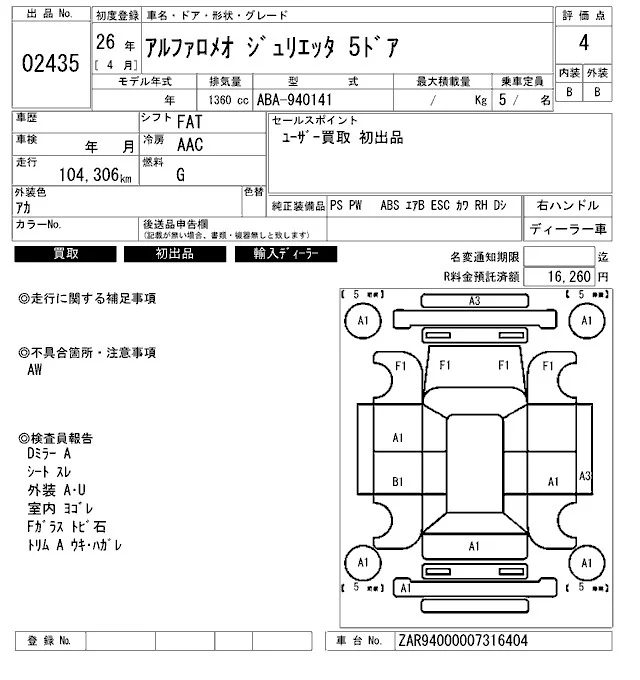 Alfa Romeo Giulietta с аукциона Японии ARAI Bayside лот № 2435
