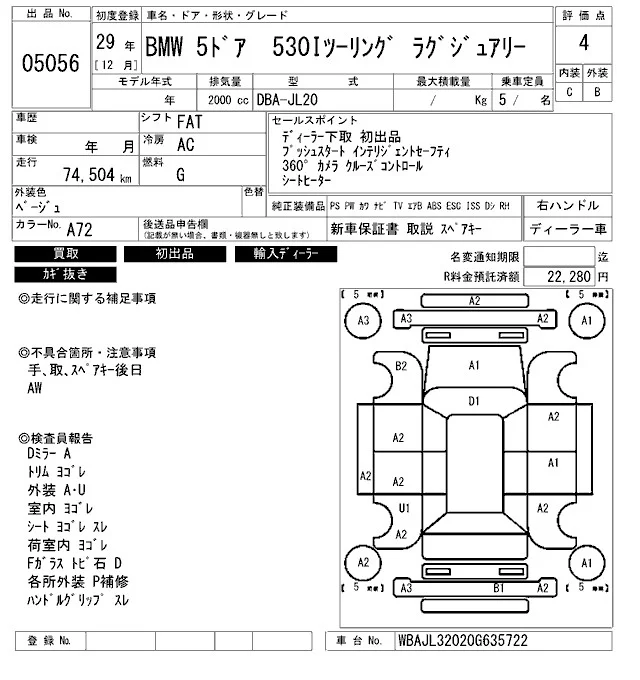 BMW 5-Series с аукциона Японии ARAI Bayside лот № 5056