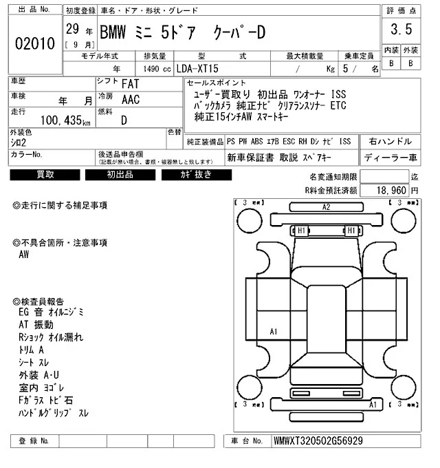 BMW MINI с аукциона Японии ARAI Bayside лот № 2010