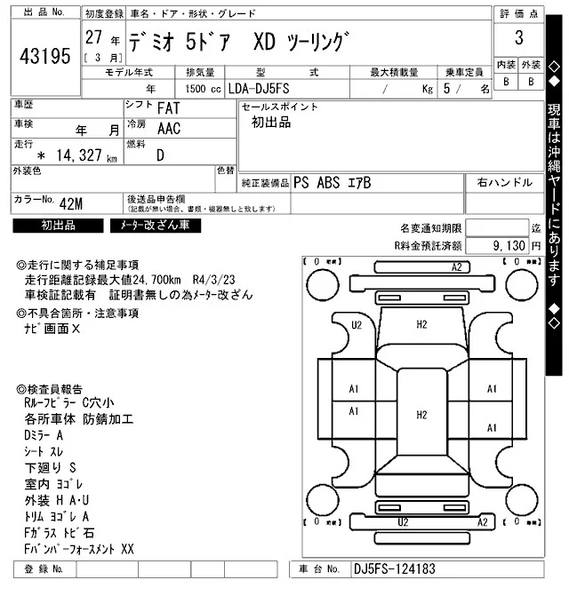 Mazda DEMIO с аукциона Японии ARAI Bayside лот № 43195