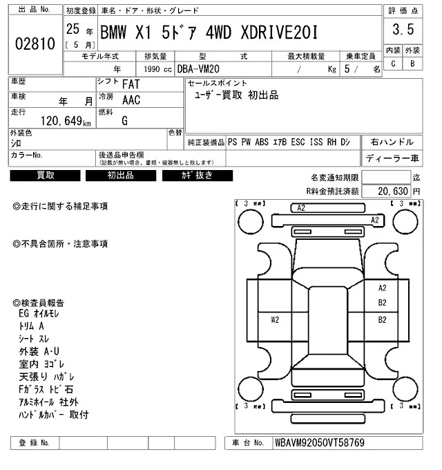 BMW X1 с аукциона Японии ARAI Bayside лот № 2810