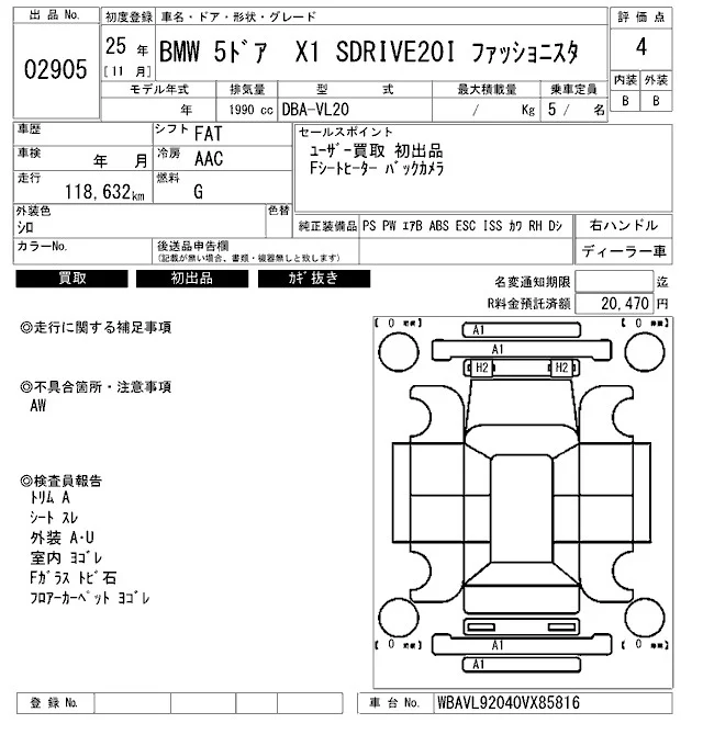 BMW X1 с аукциона Японии ARAI Bayside лот № 2905