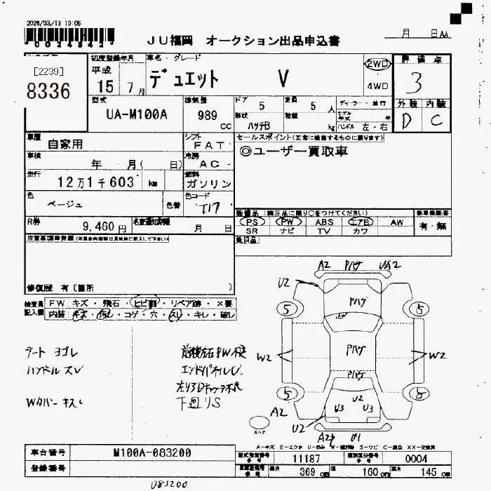 Toyota DUET с аукциона Японии JU Fukuoka лот № 8336
