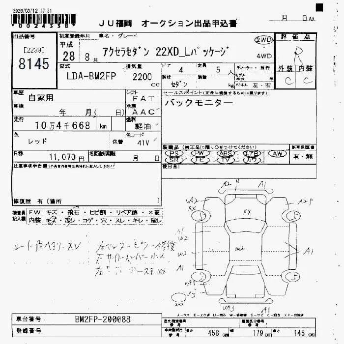 Mazda AXELA с аукциона Японии JU Fukuoka лот № 8145