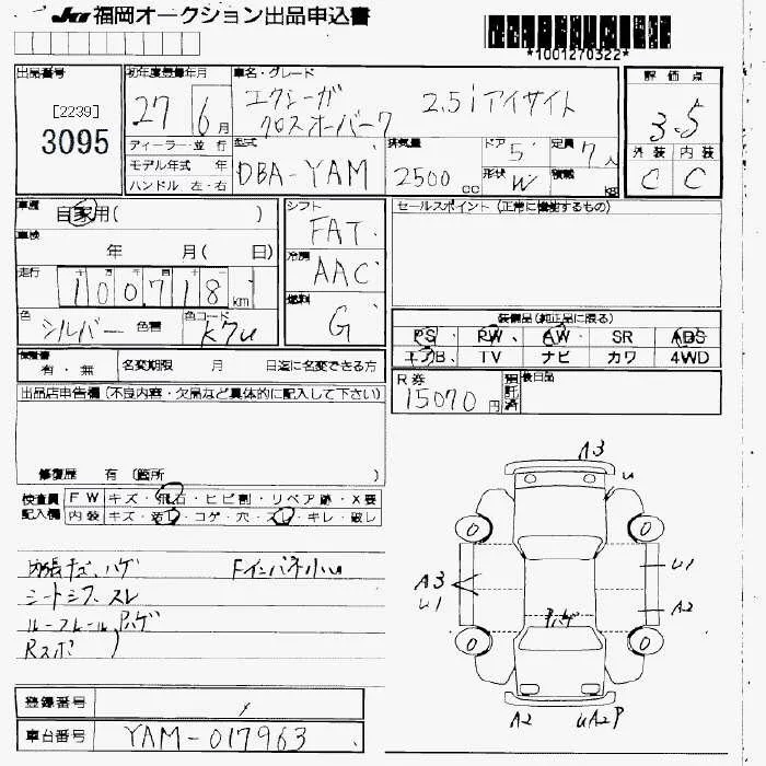 Subaru EXIGA с аукциона Японии JU Fukuoka лот № 3095
