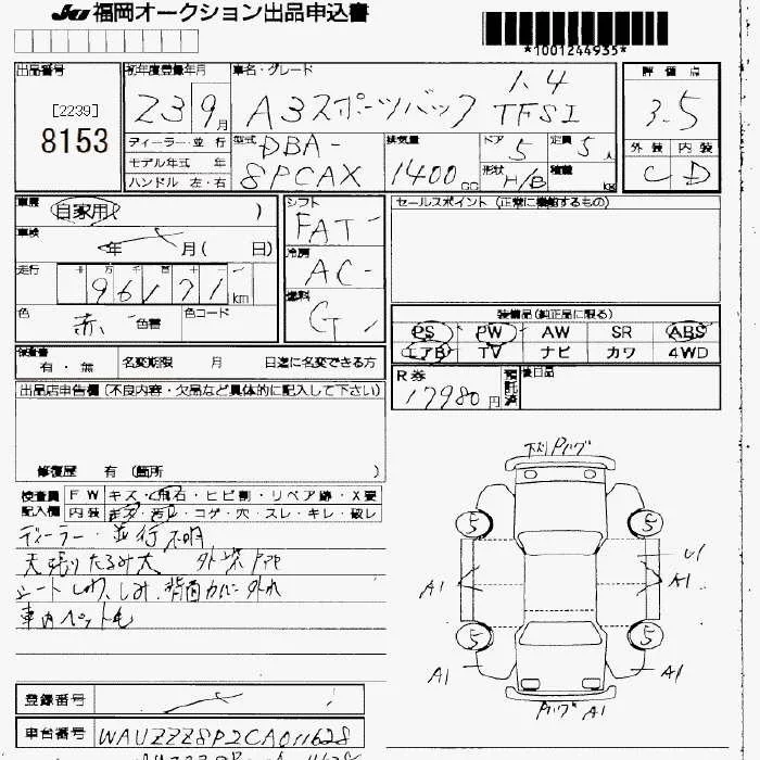 Audi A3 с аукциона Японии JU Fukuoka лот № 8153
