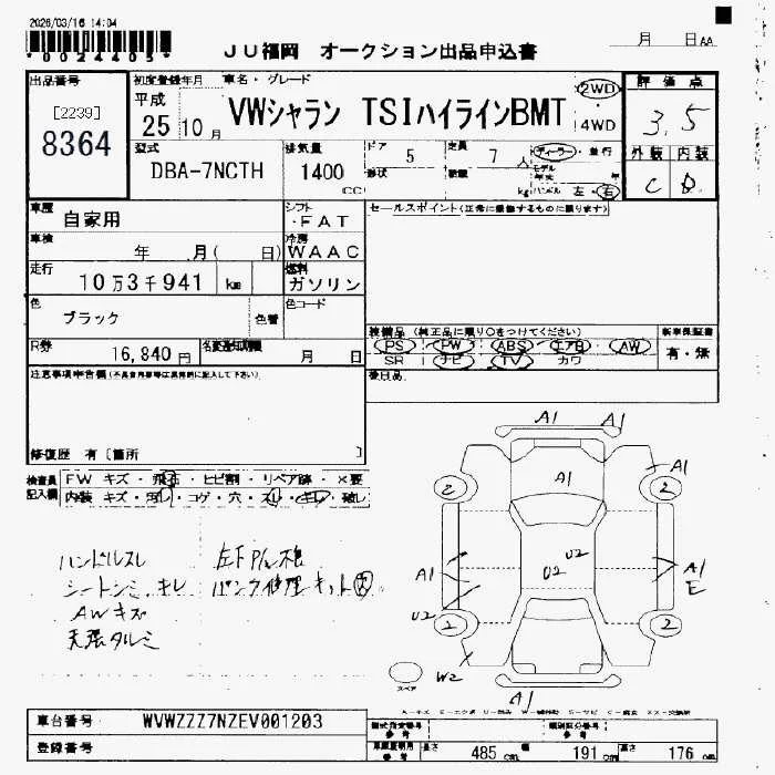 Volkswagen SHARAN с аукциона Японии JU Fukuoka лот № 8364