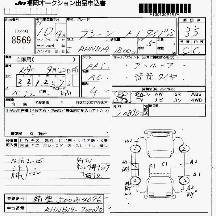 Nissan RASHEEN с аукциона Японии JU Fukuoka лот № 8569