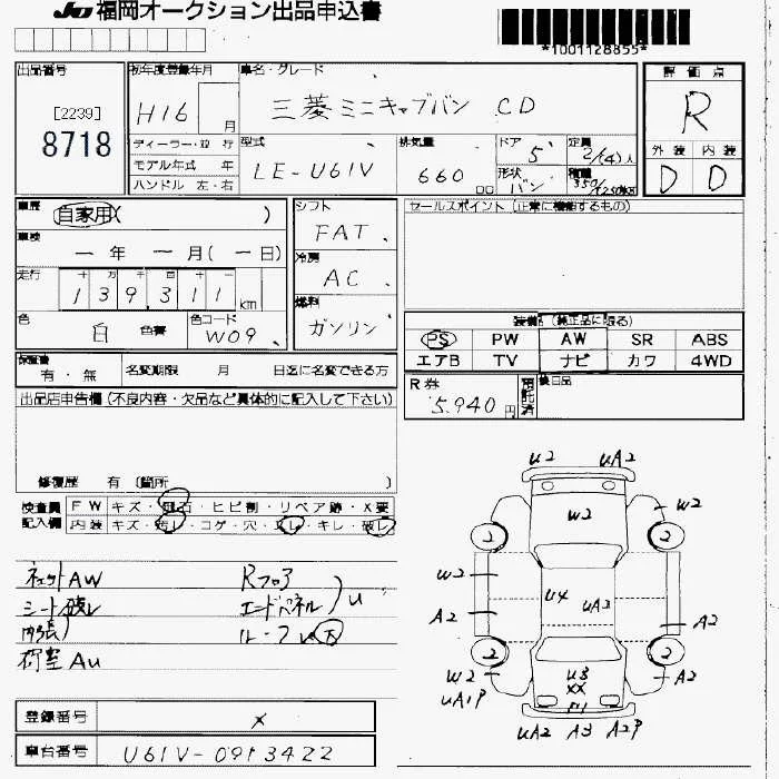 Mitsubishi MINICAB VAN с аукциона Японии JU Fukuoka лот № 8718