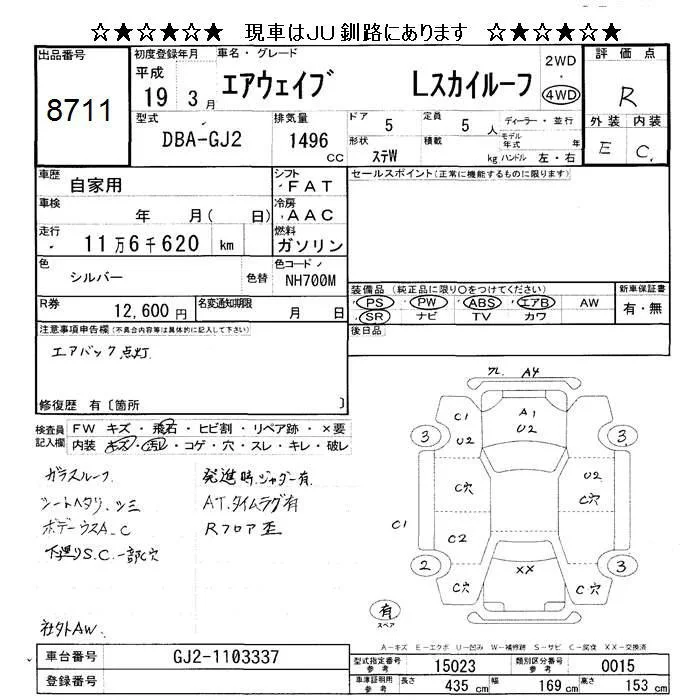 Honda AIRWAVE с аукциона Японии JU Hokkaido лот № 8711