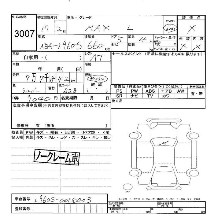 Daihatsu MAX с аукциона Японии JU Hokkaido лот № 3007