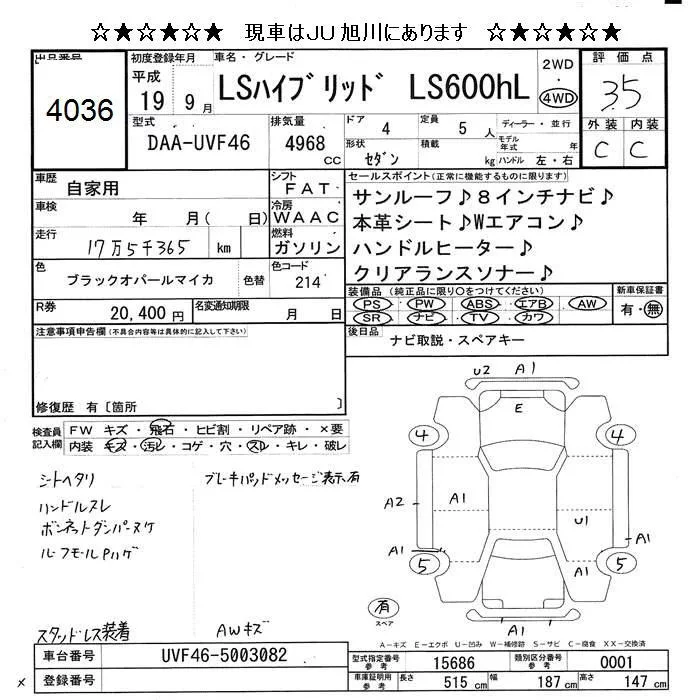 Lexus LS с аукциона Японии JU Hokkaido лот № 4036
