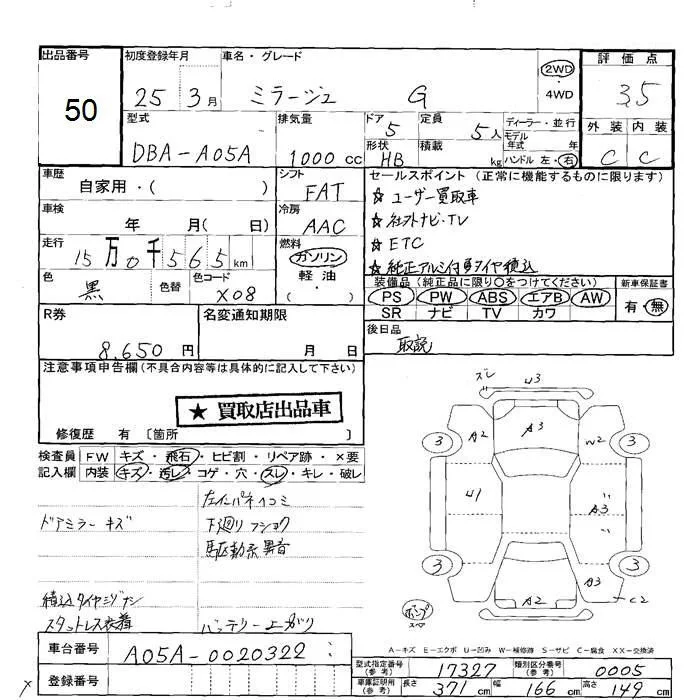 Mitsubishi MIRAGE с аукциона Японии JU Hokkaido лот № 50
