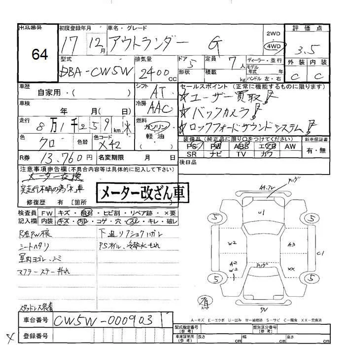 Mitsubishi OUTLANDER с аукциона Японии JU Hokkaido лот № 64