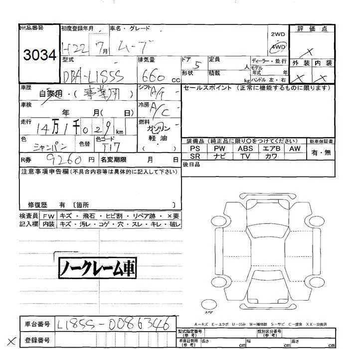 Daihatsu MOVE с аукциона Японии JU Hokkaido лот № 3034