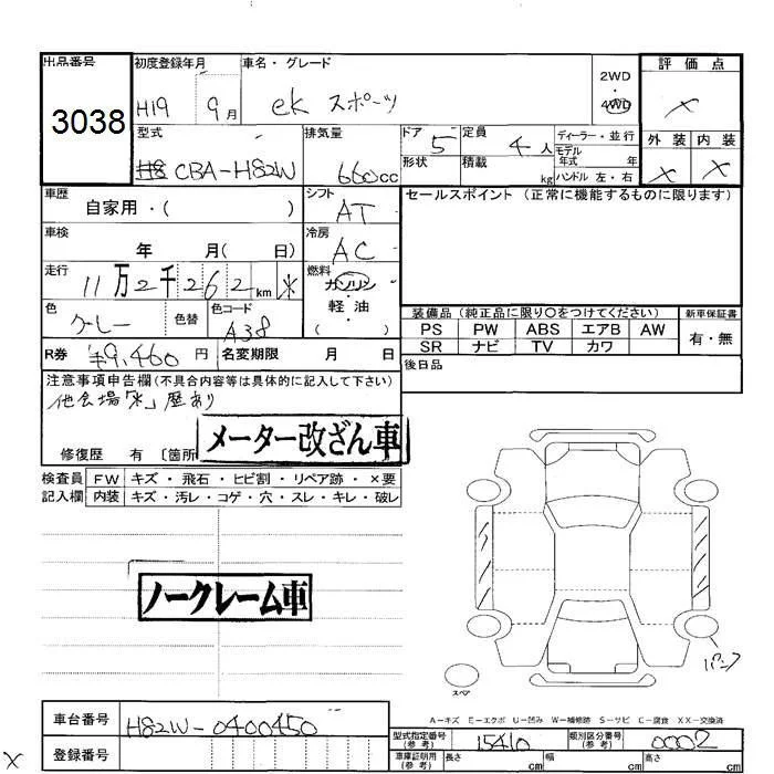 Mitsubishi EK SPORTS с аукциона Японии JU Hokkaido лот № 3038