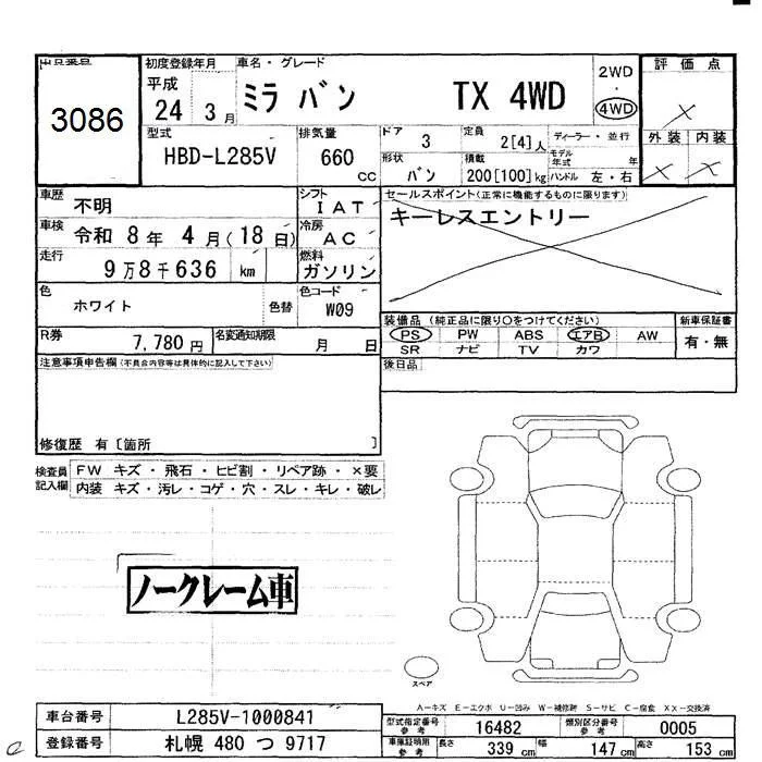 Daihatsu MIRA с аукциона Японии JU Hokkaido лот № 3086