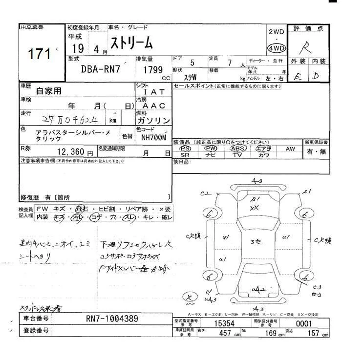 Honda STREAM с аукциона Японии JU Hokkaido лот № 171