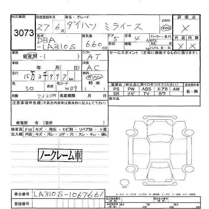 Daihatsu MIRA E S с аукциона Японии JU Hokkaido лот № 3073