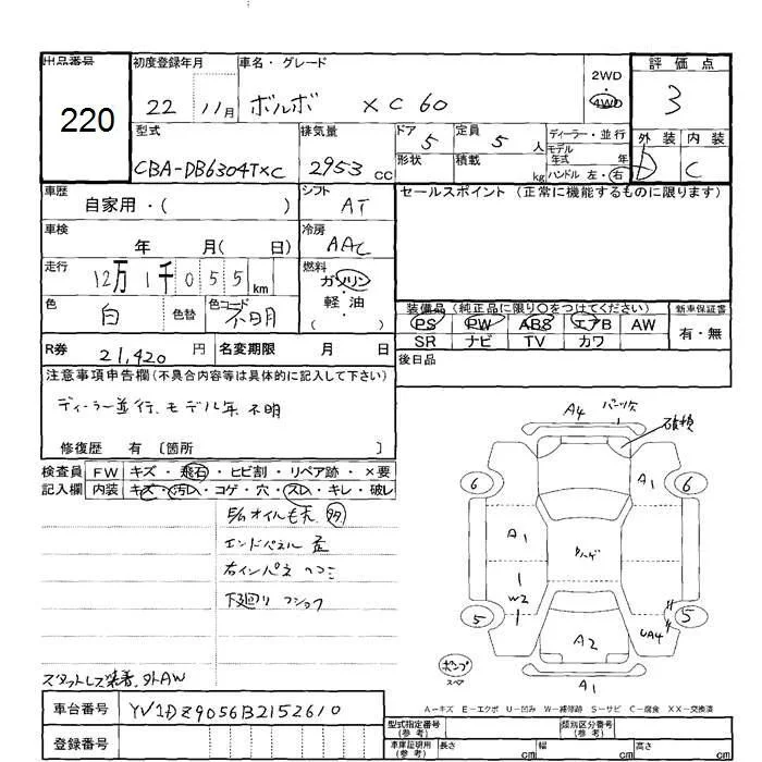 Volvo XC60 с аукциона Японии JU Hokkaido лот № 220