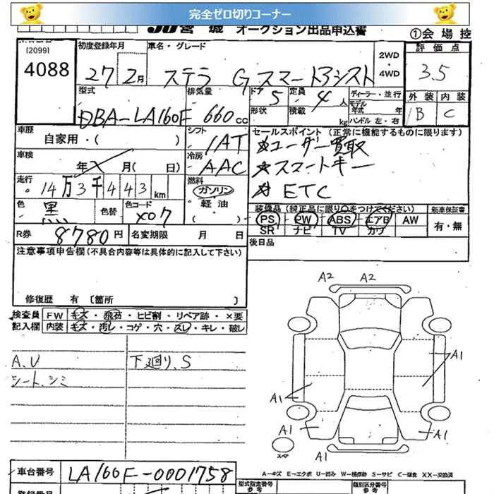 Subaru STELLA с аукциона Японии JU Miyagi лот № 4088