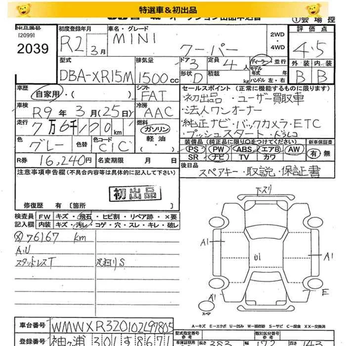 BMW MINI с аукциона Японии JU Miyagi лот № 2039