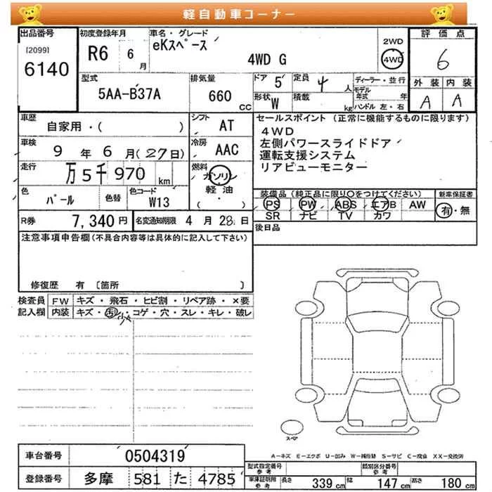 Mitsubishi EK SPACE с аукциона Японии JU Miyagi лот № 6140