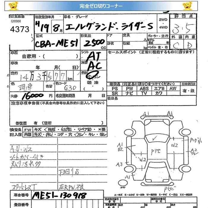 Nissan ELGRAND с аукциона Японии JU Miyagi лот № 4373