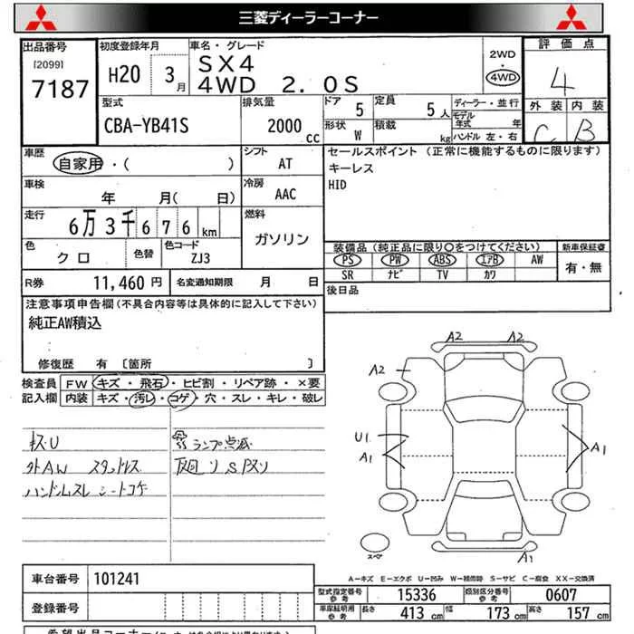 Suzuki SX-4 с аукциона Японии JU Miyagi лот № 7187
