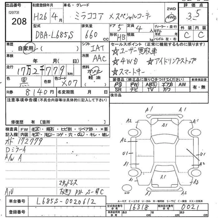 Daihatsu MIRA с аукциона Японии JU Niigata лот № 208