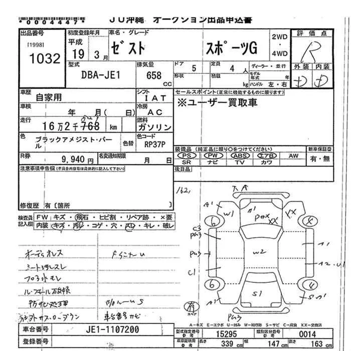 Honda ZEST с аукциона Японии JU Okinawa лот № 1032