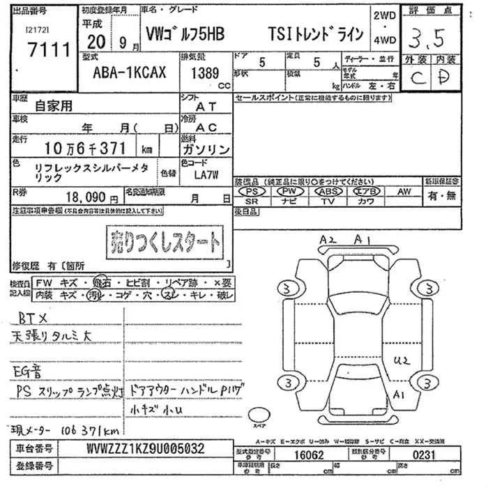 Volkswagen Golf с аукциона Японии JU Tochigi лот № 7111