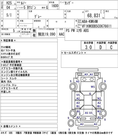 Renault KANGOO с аукциона Японии NAA Tokyo лот № 8514