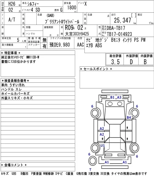 Nissan SYLPHY с аукциона Японии NAA Tokyo лот № 87