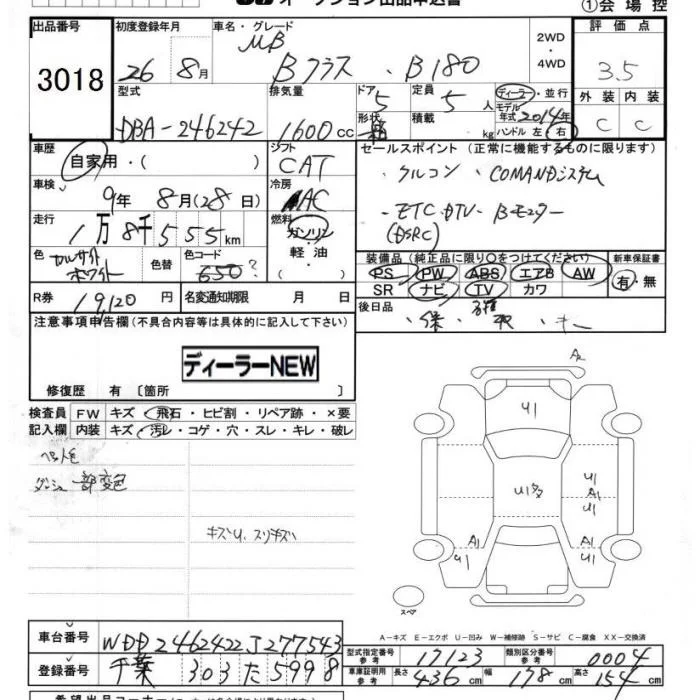 Mercedes-Benz B CLASS с аукциона Японии JU Chiba лот № 3018